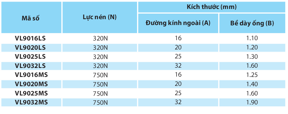| 1 | Ống luồn dây điện tròn PVC Vanlock MS D16 VL9016MS | Ống luồn dây điện Vanlock 750N MS D16 |